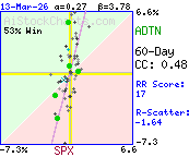 Correlation Plot    ExplainYTD: ADTN  19.4 %  vs. SPX  1.4 %