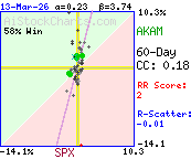 Correlation Plot    ExplainYTD: AKAM  24.3 %  vs. SPX  -0.0 %