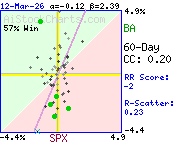 Correlation Plot    ExplainYTD: BA  11.9 %  vs. SPX  -0.1 %