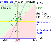 * Last 60 market days. BCX relative to SPX - S&P 500 Index
