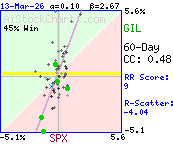 Correlation Plot    ExplainYTD: GIL  16.0 %  vs. SPX  1.4 %
