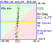 Correlation Plot    ExplainYTD: SOXL  53.1 %  vs. SPX  -0.0 %