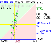Correlation Plot    ExplainYTD: STRL  41.7 %  vs. SPX  1.4 %