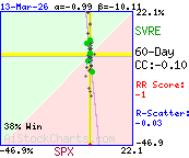 Correlation Plot    ExplainYTD: SVRE  -45.2 %  vs. SPX  1.3 %