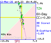 * Last 60 market days. TZA relative to SPX - S&P 500 Index