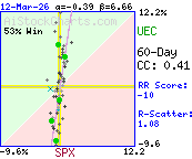 Correlation Plot    ExplainYTD: UEC  38.0 %  vs. SPX  1.3 %