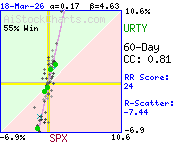 * Last 60 market days. URTY relative to SPX - S&P 500 Index