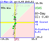 Correlation Plot    ExplainYTD: USAS  47.4 %  vs. SPX  -0.1 %