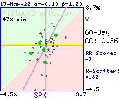 Correlation Plot    ExplainYTD: V  -5.5 %  vs. SPX  1.3 %