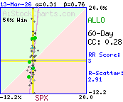 More than 92% of the variation in ALLO daily price %changes was due to factors other than SPX daily %changes.