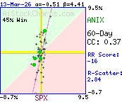 More than 86% of the variation in ANIX daily price %changes was due to factors other than SPX daily %changes.