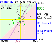 Correlation coefficient indicates very little or no strength in the correlation between SPX and BBDC.
