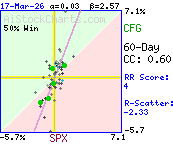 More than 64% of the variation in CFG daily price %changes was due to factors other than SPX daily %changes.