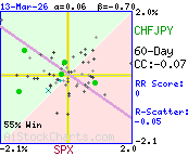 Correlation coefficient indicates very little or no strength in the correlation between SPX and CHFJPY.