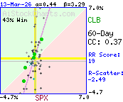 More than 86% of the variation in CLB daily price %changes was due to factors other than SPX daily %changes.