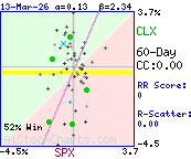 Correlation coefficient indicates very little or no strength in the correlation between SPX and CLX.