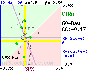More than 97% of the variation in CTRA daily price %changes was due to factors other than SPX daily %changes.