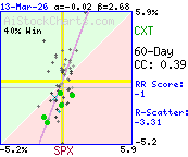 More than 85% of the variation in CXT daily price %changes was due to factors other than SPX daily %changes.