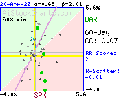 Correlation coefficient indicates very little or no strength in the correlation between SPX and DAR.