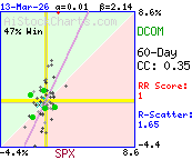 More than 88% of the variation in DCOM daily price %changes was due to factors other than SPX daily %changes.