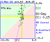 Correlation coefficient indicates very little or no strength in the correlation between SPX and EGY.