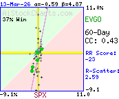 More than 82% of the variation in EVGO daily price %changes was due to factors other than SPX daily %changes.