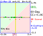 Correlation coefficient indicates very little or no strength in the correlation between SPX and GBIL.
