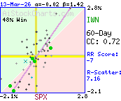More than 48% of the variation in IWN daily price %changes was due to factors other than SPX daily %changes.
