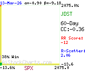 More than 87% of the variation in JDST daily price %changes was due to factors other than SPX daily %changes.