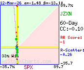 Correlation coefficient indicates very little or no strength in the correlation between SPX and JZXN.