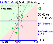 More than 95% of the variation in KT daily price %changes was due to factors other than SPX daily %changes.