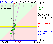 Correlation coefficient indicates very little or no strength in the correlation between SPX and KURA.