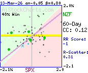 Correlation coefficient indicates very little or no strength in the correlation between SPX and NZF.