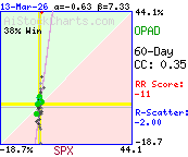 More than 88% of the variation in OPAD daily price %changes was due to factors other than SPX daily %changes.