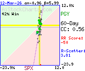 More than 69% of the variation in PGY daily price %changes was due to factors other than SPX daily %changes.
