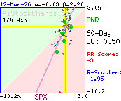 More than 75% of the variation in PNR daily price %changes was due to factors other than SPX daily %changes.