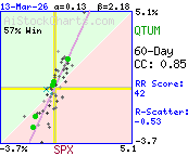 More than 28% of the variation in QTUM daily price %changes was due to factors other than SPX daily %changes.