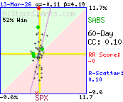 Correlation coefficient indicates very little or no strength in the correlation between SPX and SABS.