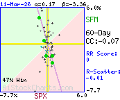 Correlation coefficient indicates very little or no strength in the correlation between SPX and SFM.