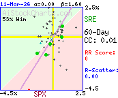 Correlation coefficient indicates very little or no strength in the correlation between SPX and SRE.