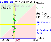 More than 94% of the variation in STIM daily price %changes was due to factors other than SPX daily %changes.