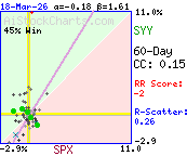 Correlation coefficient indicates very little or no strength in the correlation between SPX and SYY.