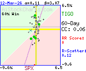 Correlation coefficient indicates very little or no strength in the correlation between SPX and TIGO.