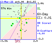 Correlation coefficient indicates very little or no strength in the correlation between SPX and UL.