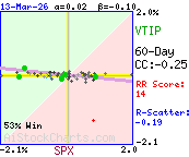 More than 94% of the variation in VTIP daily price %changes was due to factors other than SPX daily %changes.
