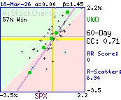 More than 50% of the variation in VWO daily price %changes was due to factors other than SPX daily %changes.