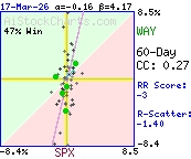 More than 93% of the variation in WAY daily price %changes was due to factors other than SPX daily %changes.